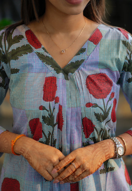 AL 554 Kalamkari Cotton Kurti with Duppatta(with lining)