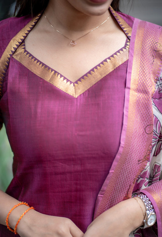 AL 557 Mangalagiri Kurti with nizam border dupatta (with lining)