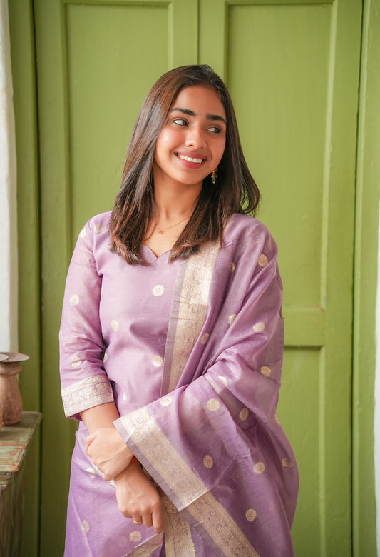 AL 471 Raw silk A line kurta set with silk dupatta