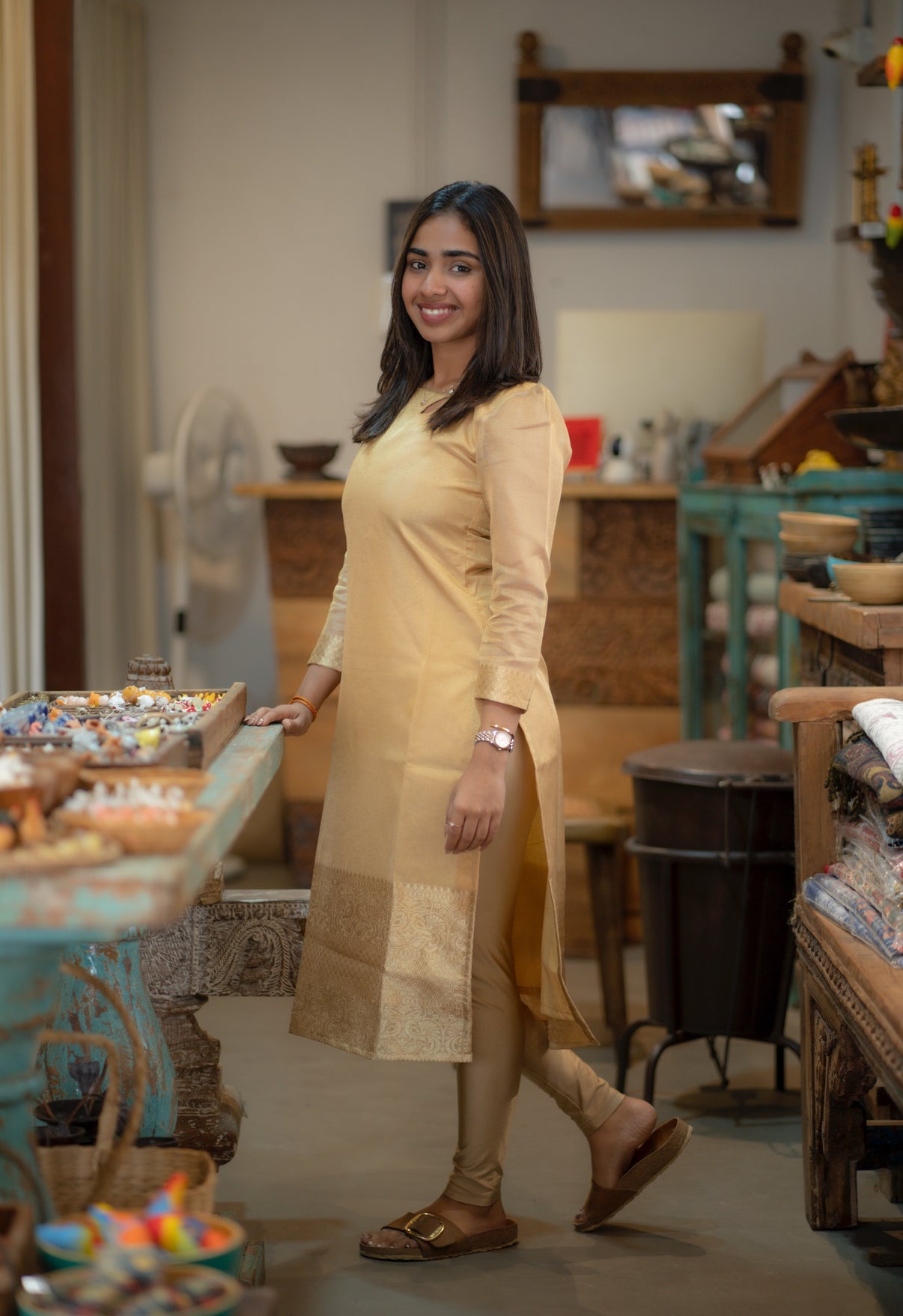 AL 550 Gold Tissue Kurti with border (with lining)